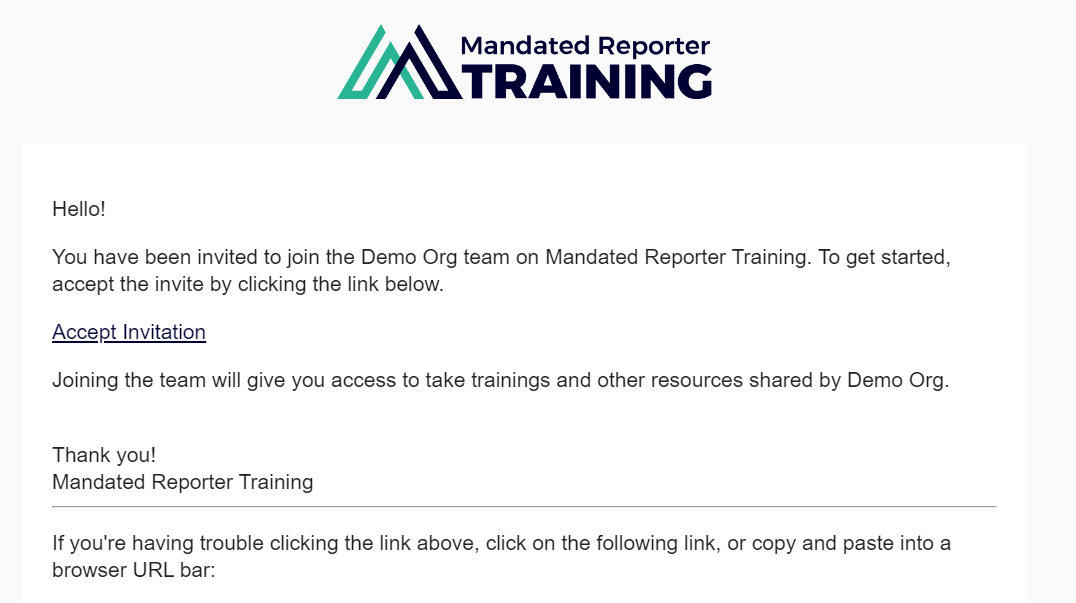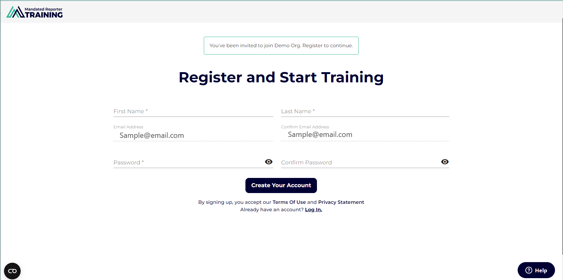 If your organization admin has sent you an invite but you don't have an account with us, you will need to register using that link. Please follow the steps below to Register using an Organization invite: